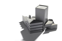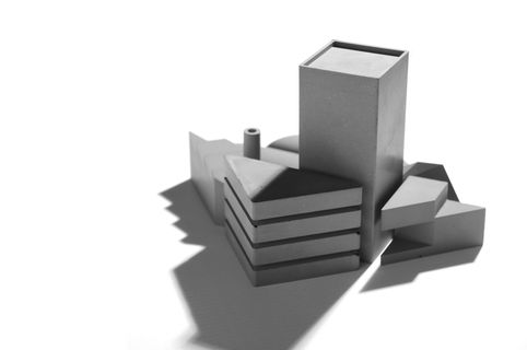 A tangram is a puzzle consisting of seven flat pieces. The object of this game and psychological test is to put the pieces together to form a shape without any overlap, usually on a silhouette. In our case, the designer took the tangram to a whole new level by adding miniature city landscapes to make the game even more visually stunning. Each piece is made of solid concrete with a smooth outer surface.