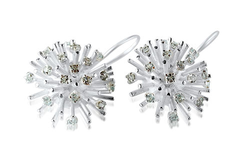 Fireworks earrings big (ᴓ 21mm) in 6 variations with 34 gemstones and 2 variations without gemstones (white and black).