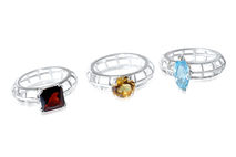 Available with Citrine, Garnet and blue Topaz in Round (ᴓ 8mm), Square (8x8mm) and Marquise (12x6mm) shape. Rings in Silver 925.