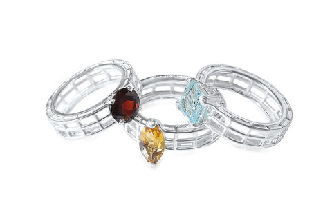 Framework Ring "Wheel" small (6mm) in 3 variations of gemstone shapes and colors.