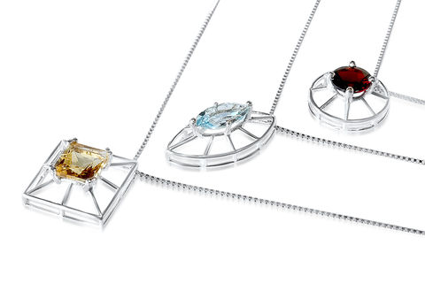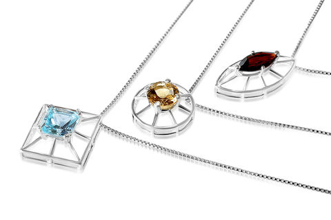 Framework pendant in 3 variations of gemstone shapes and colors.