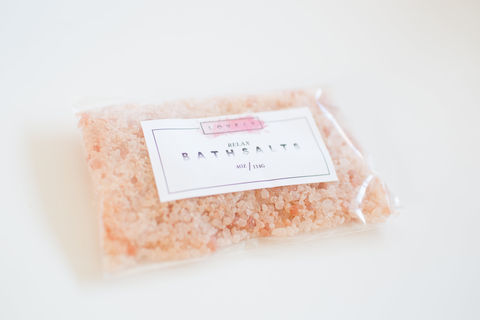 Relax Bath Salts: Dead Sea Salts, Pink Himalayan Salt, French Pink Clay, Sodium Bicarbonate, Sweet Almond Oil, Jasmine Essential Oil, Lavender Essential Oil, Ylang Ylang III Essential Oil.