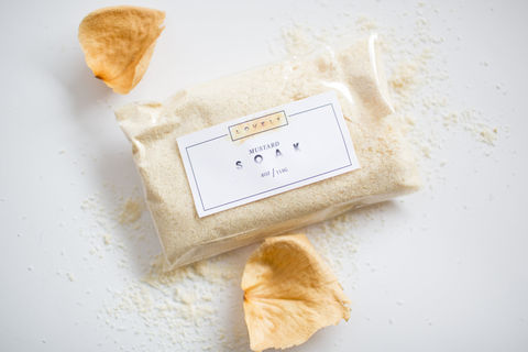 Mustard Soak: Mustard Seed Powder, Epsom Salt, Sodium Bicarbonate, Eucalyptus Essential Oil, Rosemary Essential Oil, Spearmint Essential Oil.