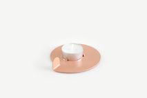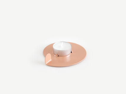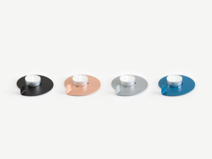 A tea light is a nice source of light. That’s why we designed a shape that defines a place to enhance this quality instead of enclosing it. The outcome is a simple and playful candleholder, whose form, literally revolves around the tea light. The development of the outline, size of the handle as well as the placement of the candle follow a mathematical logic based on the radius of the tea light. The result is a beautiful interaction between the candle’s light and the contour.