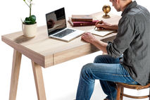 New writing desk with a name 4.9 was welcomed into EMKO’s assortment recently. Unusual name reflects the designer’s Marius Valaitis idea about being imperfect: it’s almost five, but with a bit of lack. Also, it’s the angle of the bottom of desktop, which has a “crack” in the back– not only for the storage, but also for the nice closure of core idea. Nevertheless keeping imperfection, all the details in this desk have to be made with perfect accuracy, otherwise desk will not work. At least not in the way it is suppose to – not only being functional piece of furniture for convenient and efficiency work, but bringing style into your life. Beauty cannot be empty, for sure. But functions can be beautiful.