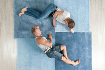 Ancient Arabic tradition is to cover the floor with carpets of different sizes, colors and patterns; it inspired designers’ team WHYNOT! to create the Over carpet. Over is a larger carpet showing its character; you can see different shades matching together with different patterns, but keeping the simplicity and aesthetics. Altogether it gives a unique harmony to the composition; Over is a protagonist without shouting, an equilibrated handmade patchwork proposed in two shapes: square for the heart of the room and stripe for the corridor or cozy places. Color palette strolls from green tones to blue ones, as well as from mustard yellow to wine red.