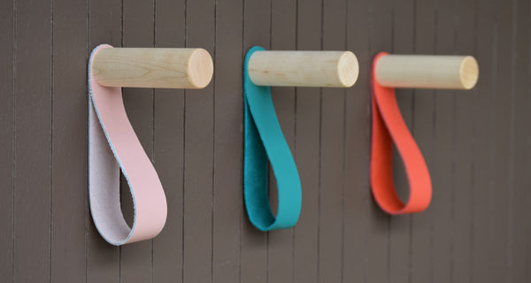This is a limited edition 3-pack of our popular Teddy Hooks benefiting the Raphael House. Natural maple pegs come with three colored leather straps - one pink, one turquoise, and one coral. The hooks are packaged in a white box perfect for gifting.
