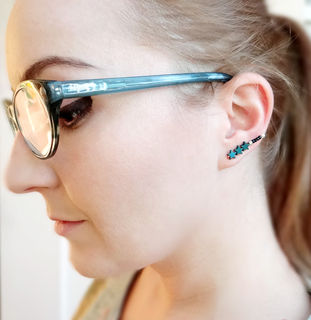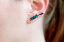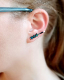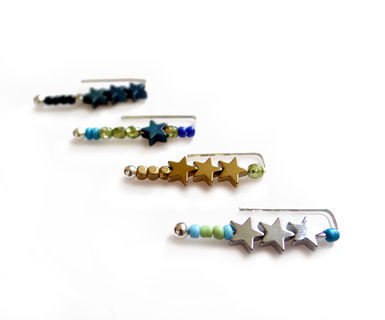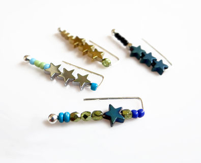 Modern and minimal ear climber earring, made with dark gold, silver or blue Hematite stars, raw brass, crystal or glass beads and 925 Sterling silver earwire. You can wear the earring two ways: flipped up for a ''climber'' look or down as a regular earring. NOTE: the price is for a single earring, as these are often worn as singles in addition to other piercings. Pick a ''pair'' variation from the drop down menu if you want a matching pair.