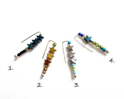 ►Color variations to pick from include: 1. blue/black // 2. gold stars, one green bead // 3. silver/blue/green // 4. blue/green