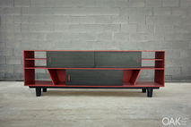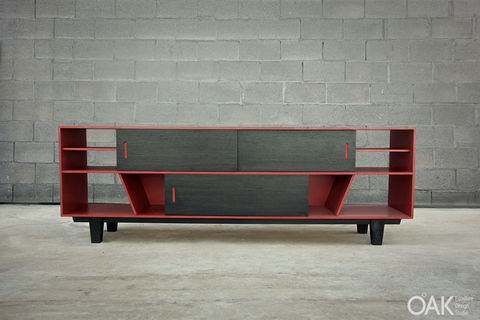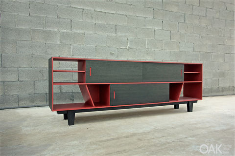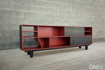 Sliding doors sideboard, made of mdf and black veneer combination.