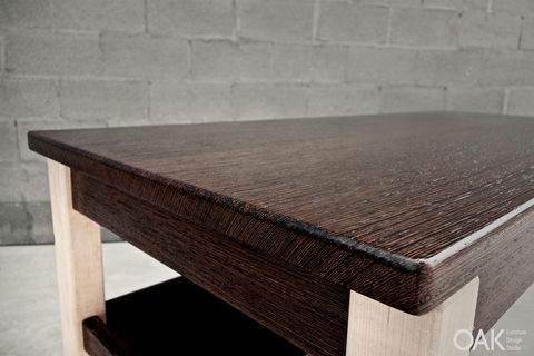 A tribute to the sixties student desk with matching size for adult, desk top made of wenge and the legs made of maple.