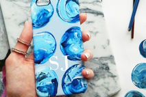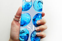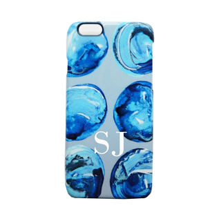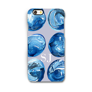 Hand painted deep blue polka dots contrast against a dusty pale purple background. Originally painted in house at the RP studio and digitised to become a piece of wearable art work for your precious devices!