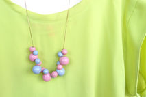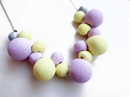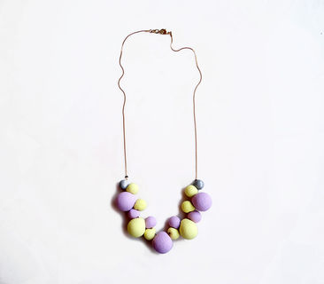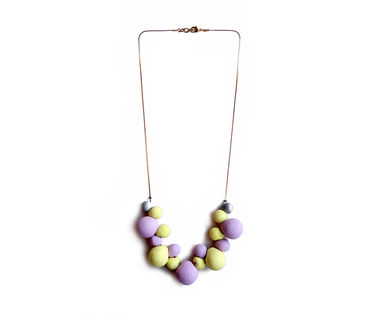 Fun and bubble statement necklace in light purple and pale yellow: a prefect pastel shade combination to accessorize your modern outfit.