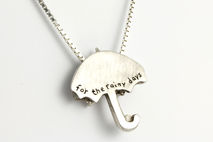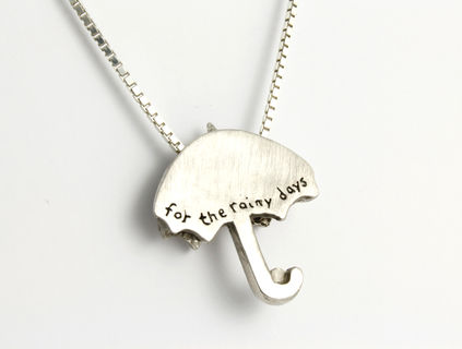 This little umbrella has a very special meaning. Many times jewelry can be worn as a talisman. A certain piece makes us feel lucky, or confidant when we wear it. This umbrella is meant to be a tangible reminder that as the hard times (or "rainy days") come and go, we will persevere and a sunny sky is right around the corner.