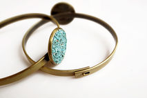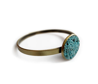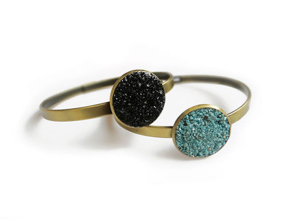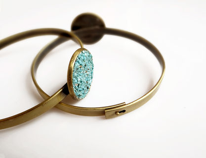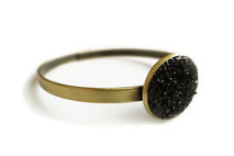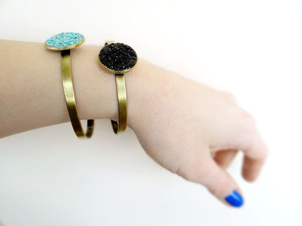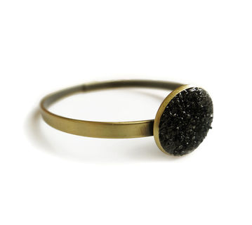 Made with antiqued raw brass and crushed Black Tourmaline crystals. Wear it as a single statement piece or stacked with other bracelets for a boho look.