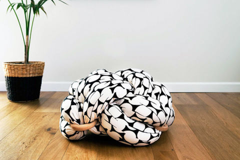 This unique Knot cushion is inspired by nautical elements and esthetics. The cushion utilizes a unique tying technique that makes the cushion beautiful and functional. The wooden rings, that tie the cushion togather are hand made by our wonderful wood turner. You can place the cushion in your living room or bedroom, for that extra pop of color and texture in the room. It can also serve as a wonderful gift to your design-enthusiastic friends and family :)
