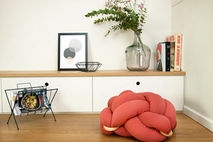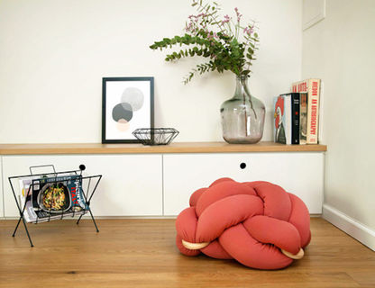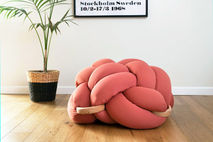This unique Knot cushion is inspired by nautical elements and esthetics. The cushion utilizes a unique tying technique that makes the cushion beautiful and functional. The wooden rings, that tie the cushion togather are hand made by our wonderful wood turner. You can place the cushion in your living room or bedroom, for that extra pop of color and texture in the room. It can also serve as a wonderful gift to your design-enthusiastic friends and family :)