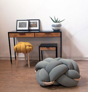 This unique Knot cushion is inspired by nautical elements and esthetics. The cushion utilizes a unique tying technique that makes the cushion beautiful and functional. The wooden rings, that tie the cushion togather are hand made by our wonderful wood turner. You can place the cushion in your living room or bedroom, for that extra pop of color and texture in the room. It can also serve as a wonderful gift to your design-enthusiastic friends and family :)