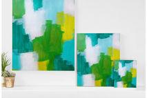 The canvas is an art duplication that was taken from one of my original paintings. The original was made with acrylic, collage, and other mixed media. In collaboration with DENY Designs, they have created my works on canvas - making them affordable. Watch your walls come alive with these new wall pieces!
