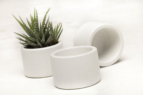 Concrete Planters - Round Pots measure app. 2.75" H x 4" Diameter. Sold as a set of 3 ea. in White.