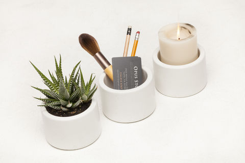 Each piece is handcast and finished with a series of coatings for interior or exterior use. These rounds offer a refined, organic asthetic with multi functional use. Plants, votives, brushes, potpurri or monte blancs add quality an design to life and business. Offer a premium handmade gift for weddings and events!! All sizes are nominal and there will be subtle variation throughout that are inherent with handmade products.