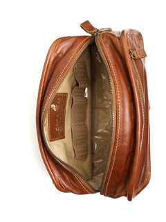 Hand-stitched durable Italian leather lined with canvas inside and layered with thick durable see through plastic to make it perfectly waterproof but still look really awesome. Completed with Solid Brass Flat Buckle Button Feet at the bottom and a detachable handle to carry it around.