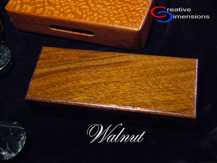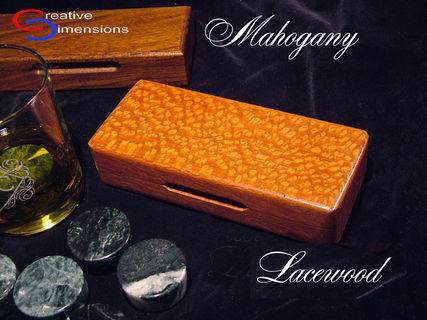 You can choose from Lacewood, Figured Claro Walnut, Curly Bubinga or a highly chatoyant Mahogany we found. Other wood species may be available, but contact me first so I can check.