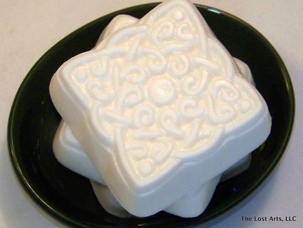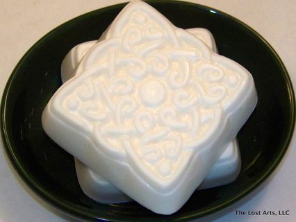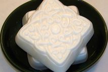 From the soft tropical fragrance of coconut to the classic lacy Celtic design, this handcrafted glycerin bar is a delight for the senses. Rich, creamy lather abounds in this bar which is loaded with shea, mango, and cocoa butters.