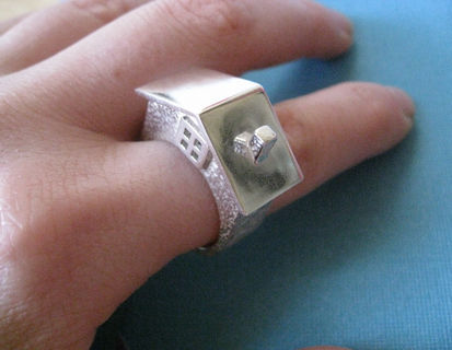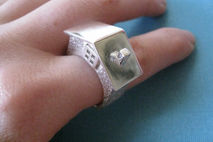 This custom made ring, featured in House Beautiful magazine, will be handmade from a sheet of sterling silver to your specified size in my Brooklyn, NY studio. It will receive a meticulous texture, done by hand, and a final polish so it will arrive to you perfect and shiny.