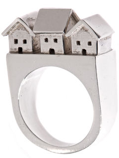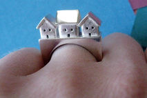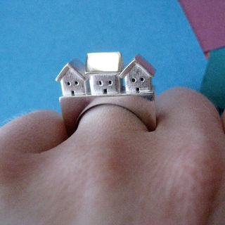 This showstopper of a ring is made in my Brooklyn studio from sterling silver just for you. Each tiny, hollow house is cast individually, from my hand fabricated models, then hand finished. Then I arrange the little scene on top of my handmade ring shank and solder it all together to create a beautiful ring that is sure to be treasured for generations.