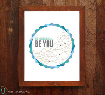 Geometric elements coming together to create a circle and its different shades of blue. This piece is open to interpretation. But basically, it's original, just like yourself.
