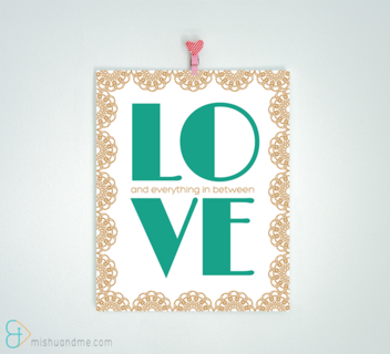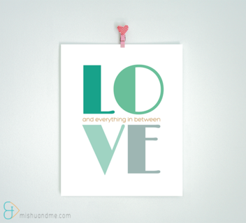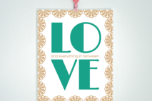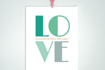 "L.O.V.E. and everything in between" is an upbeat print in emerald green and gold. Add a little color to your walls with this fun graphic print.