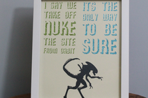 Featuring a quote from the movie Aliens and a rather lovely if deadly Alien.