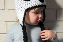This panda bear crochet hat is adorable and fun, all big eyes, cute bear ears and long tassels. Perfect to keep ears warm and add a good dollop of adorable to any outfit.