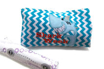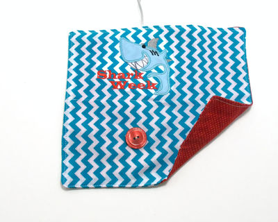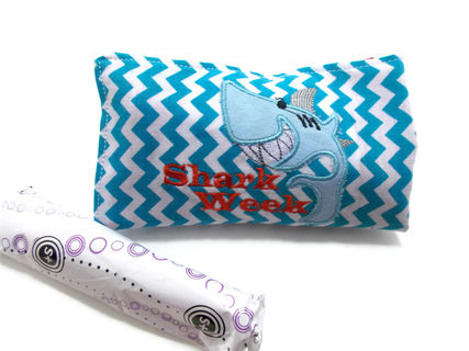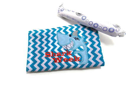 This is our Shark Week Feminine hygiene clutch. Our funny tampon wallet is embroidered with a snarky shark and says Shark Week on the outside with red contrasting fabric on the inside. Carry your feminine hygiene stash in an awesome privacy wallet. Transfer from handbag to handbag and never be stranded in the restroom again because you forgot to restock your purse with "party favors".