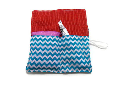 This super funny period pouch holds tampons and/or pads, is custom embroidered, carefully sewn and top stitched so it remains beautiful. Simply fold over the privacy flap, fold in half and secure the elastic strap around the bright crimson button.