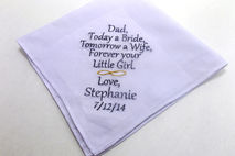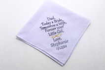 Give the first man in your life a sweet keepsake gift that is sure to bring him tears of joy with this lovely Father of the Bride handkerchief to celebrate your wedding.