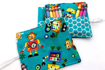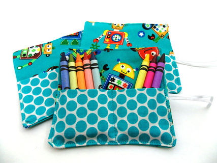 These Retro style robots are sure to please your budding artists! Each wallet fits 10-12 regular sized crayons or 3-4 jumbo crayons. Made with high quality, excellent weight, boutique fabric. I top stitch each wallet to ensure that it lasts for years.