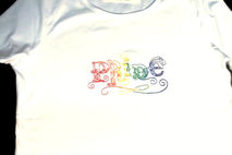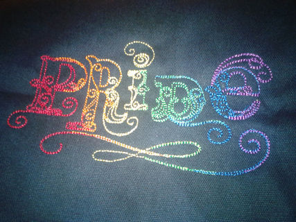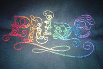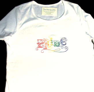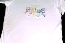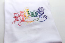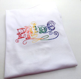 Gay Pride shirt in rainbow vintage script. Elegant and Custom Embroidered.