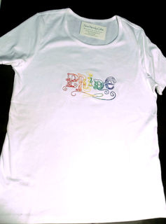 Custom embroidered, made to order, fabulously handmade Rainbow PRIDE t-shirt. All sizes, men, women, juniors or child sizes. Please message me what size and sleeve length you'd like.