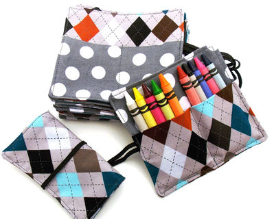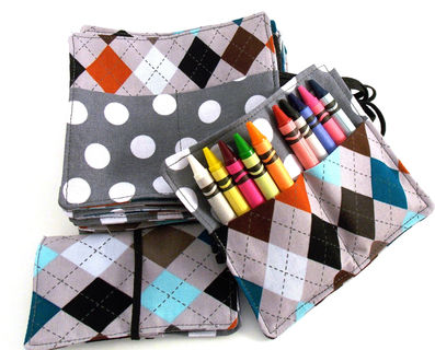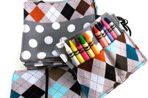 Crayon Wallet. Perfect Party Favors. 10 for 50.00 Birthday or Wedding favors. Gender neutral, grey argyle. High quality boutique fabric.