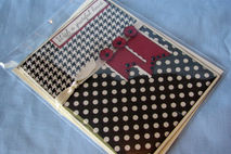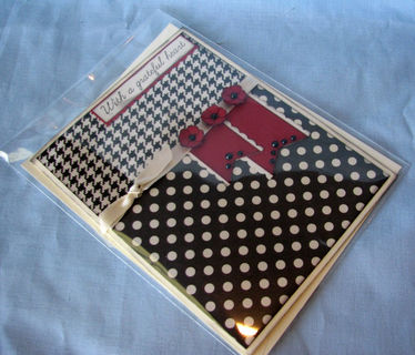 The card, along with an ivory colored envelope, come packaged in a clear cellophane baggie.