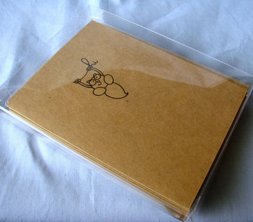 This simple card set includes 6 kraft cards and 6 kraft envelopes. The front of the card features a digital stamp (by bugaboo stamps) of a squirrel hanging from the word "hi". The very simple design makes these the perfect card to have on hand to use for all occasions. The inside of the note cards are blank so you can write a personal message to the recipient and make it personalized to the occasion.