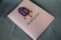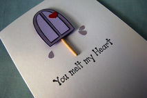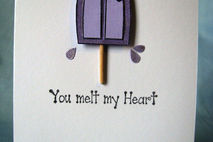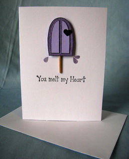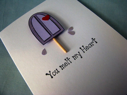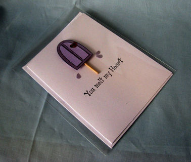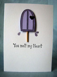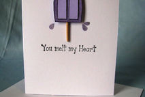Did someone do something wonderful for you? Why not tell them how they made you feel by giving them this "You melt my heart" all occasion card. The front features a frozen treat on a stick that has begun to melt along with the sentiment. The heart that is attached to the frozen treat is a metallic red (it just doen't show it well in the photos).