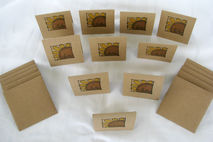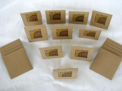 The set includes 10 cards and 10 kraft envelopes. They come packaged in a clear cellophane baggie. Each of the cards are stamped with my store logo on the back.
