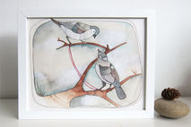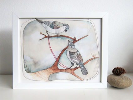 Hi! This is a listing for an 8x10 print of an original illustration of two birds. I used pencil, ink and watercolor paint to create the original, and now it's available to you in a beautiful print.