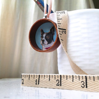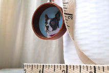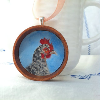 The pendant is 38mm in diameter (about 1.5 inches), half an inch deep, and is inset with an original miniature oil painting of your pet by me, Kathryn Barbosa. (Pictured pendant is an example) A sterling silver bail is attached to the mahogany wood pendant.