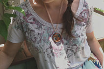 Pendant can be worn, or displayed when not in use, as a beautiful art piece. Please remove when showering, applying perfumes or sprays, or doing high impact activities.