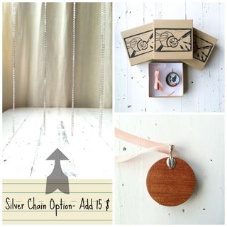 The pendant will arrive with a length of sumptuous 100% silk ribbon to wear it with right away. Many people prefer to use their own chain, so to keep the price of the pendant down, I have opted to not include a chain, but instead offer an optional 18 inch sterling silver chain as an ad-on for an additional $15.00.