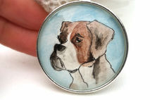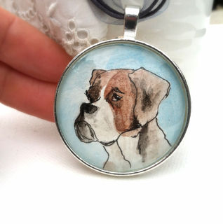 Send me a picture of your dog, cat, or any pet, and I will paint an original custom watercolor miniature pet portrait. Then I set it under glass on a personalized pendant necklace, ready for you as wearable art to take with you wherver you go! A perfect gift for yourself, the pet lover in your life, or in memorial. This picture is a sample.